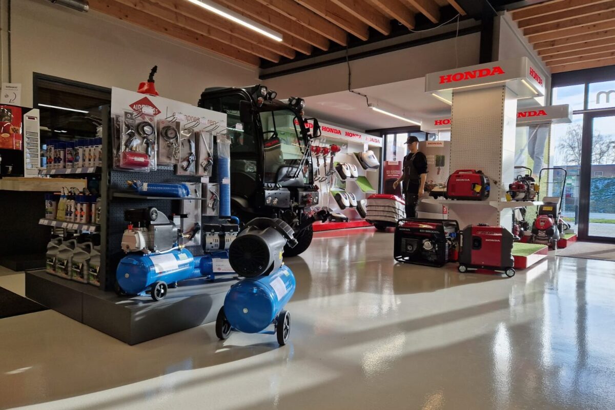 Sinds april 2022 is onze nieuwe showroom/winkel geopend. Onze overzichtelijke showroom is gevuld met verschillende machines van gerenommeerde merken voor alle voorkomende onderhoudswerkzaamheden op het gebied van bos-, tuin-, park-, en golfbanen. Naast nieuwe producten hebben wij ook een mooi aanbod aan occasions!