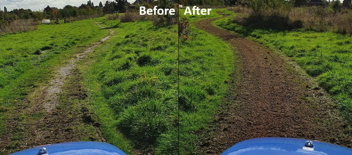 Met een verbod van het gebruik van glyfosaat op halfverharding is deze machine de oplossing om tegen gunstige kosten uw halfverharding onkruidvrij te krijgen en te houden. Denkt u hierbij aan halfverharde wandel- en fietspaden, paden op begraafplaatsen en de vele paden op een golfbaan. Het eindresultaat is een onkruidvrij pad dat weer teruggebracht is tot de originele breedte.