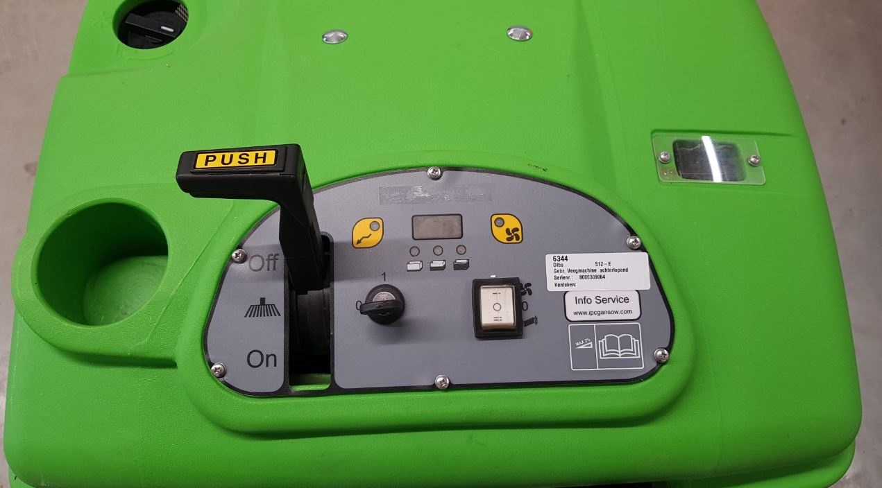 De professionele en robuuste (achter) lopende veegmachine van Dibo is ontworpen voor professioneel gebruik. Hij werkt compact en efficiënt.