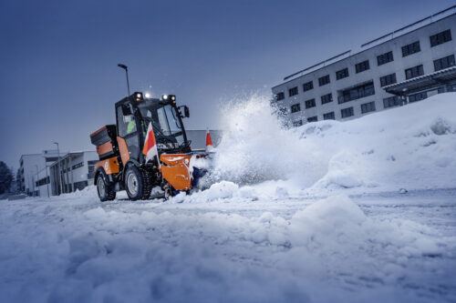 Dankzij 3 aanbouwzones biedt de compacte werktuigdrager veelzijdige gebruiksmogelijkheden, waarbij meerdere toepassingen tegelijk kunnen worden uitgevoerd en vanuit de ruime comfortcabine kunnen worden bediend. De hydrostatische vierwielaandrijving overtuigt met een traploze, schokvrije snelheidsregeling. Geveerde wielen aan de voor- en achteras maken soepel rijden mogelijk, zelfs bij off-road toepassingen.