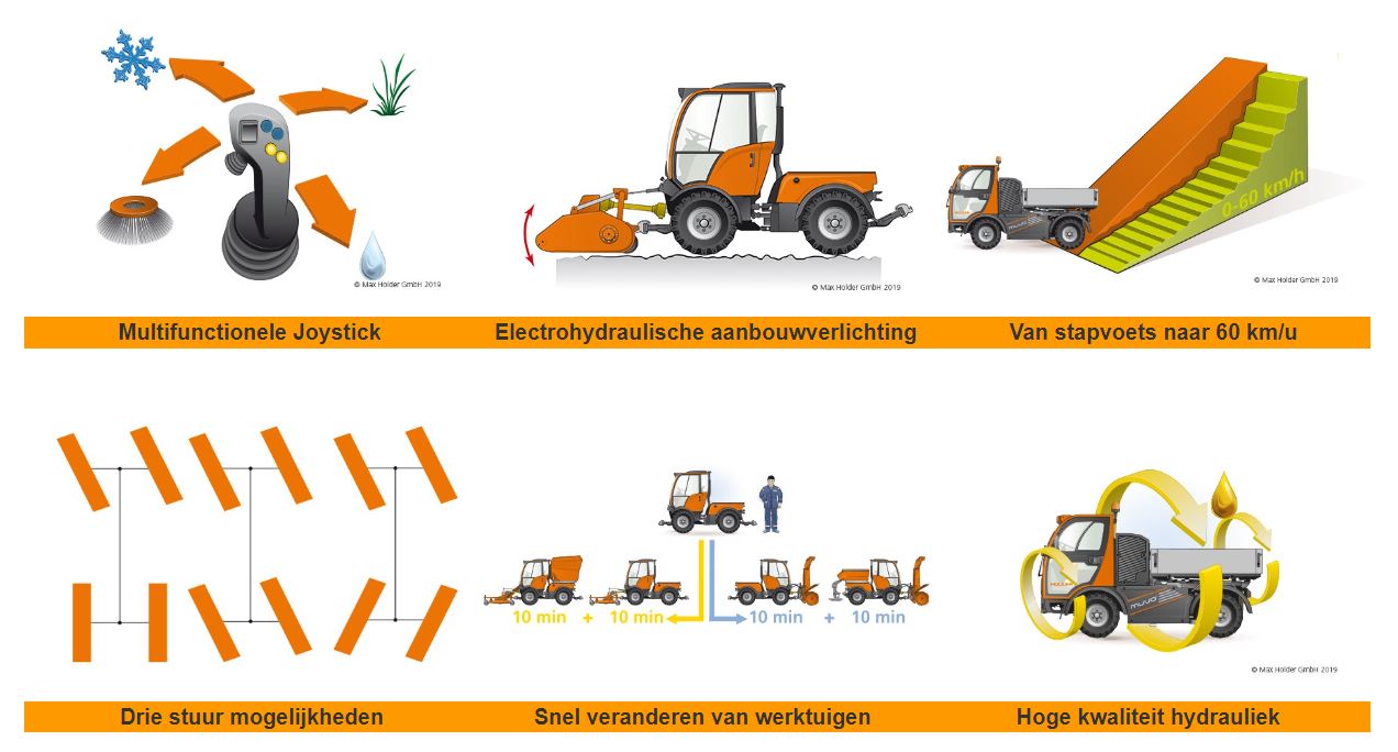 RASCO voorziet de MUVO bovendien in een breed scala aan robuuste innovatieve standaard werktuigen waardoor deze Rasco MUVO het gehele jaar door inzetbaar is.