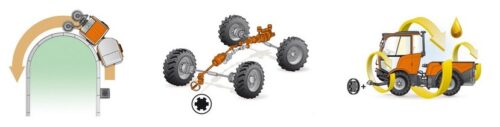 Voor extra stabiliteit – bijvoorbeeld bij het keren op hellingen, het overrijden van stoepranden of bij gebruik van opbouwen met een hoog zwaartepunt – is de S-serie uitgerust met een hydrostatische wielbelastingscompensatie.
