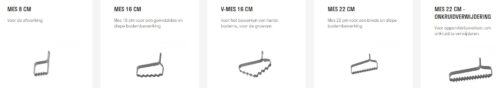 Er zijn verschillende messen verkrijgbaar, zie hiervoor de afbeeldingen.